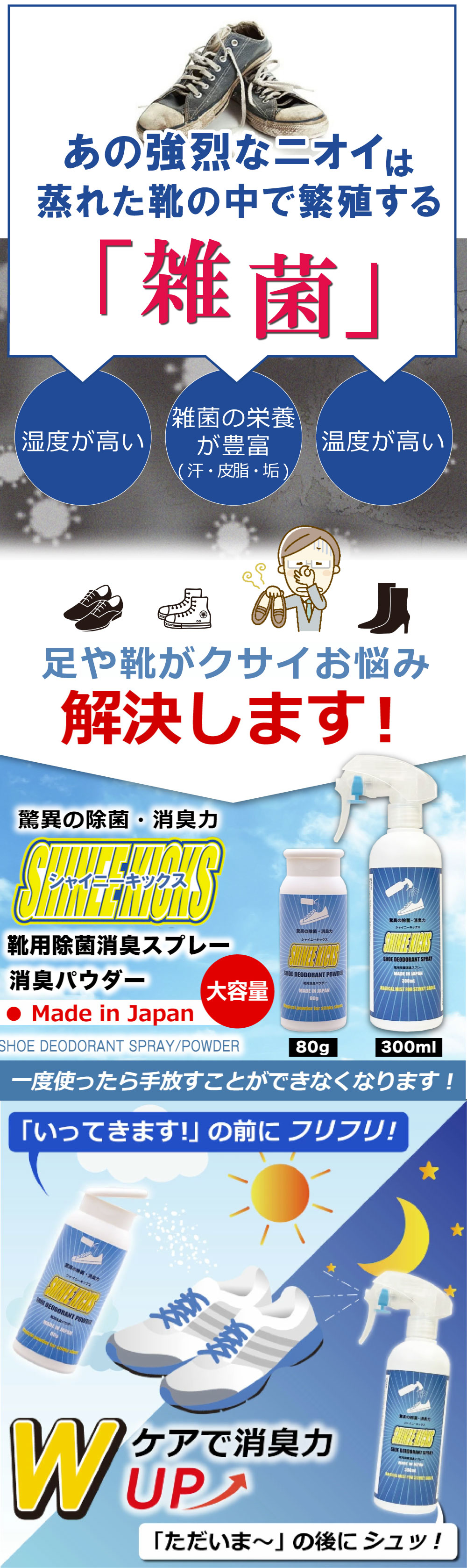 トップ > シューケアグッズ シャイニーキックスシリーズ > \直販限定!最安値/ 靴のケアフルセット 消臭パウダー80g+防水スプレー420ml+靴専用クリーナー100ml+消臭スプレー300ml [シャイニーキックス4点セット] 足 ニオイ 対策 粉 日本製 靴消臭剤 大容量 足汗 振りかけるだけ 蒸れ ブーツ スニーカー エアゾールスプレー 防水 父の日 国内正規品