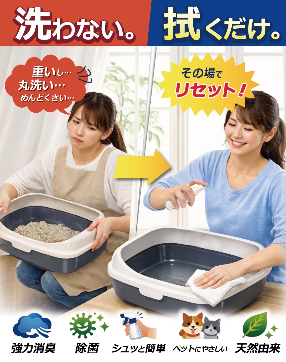 ・ 🐾💧💨ペットのトイレ、ケージ、トイレ用具やその周辺フローリングなどの除菌・消臭に。